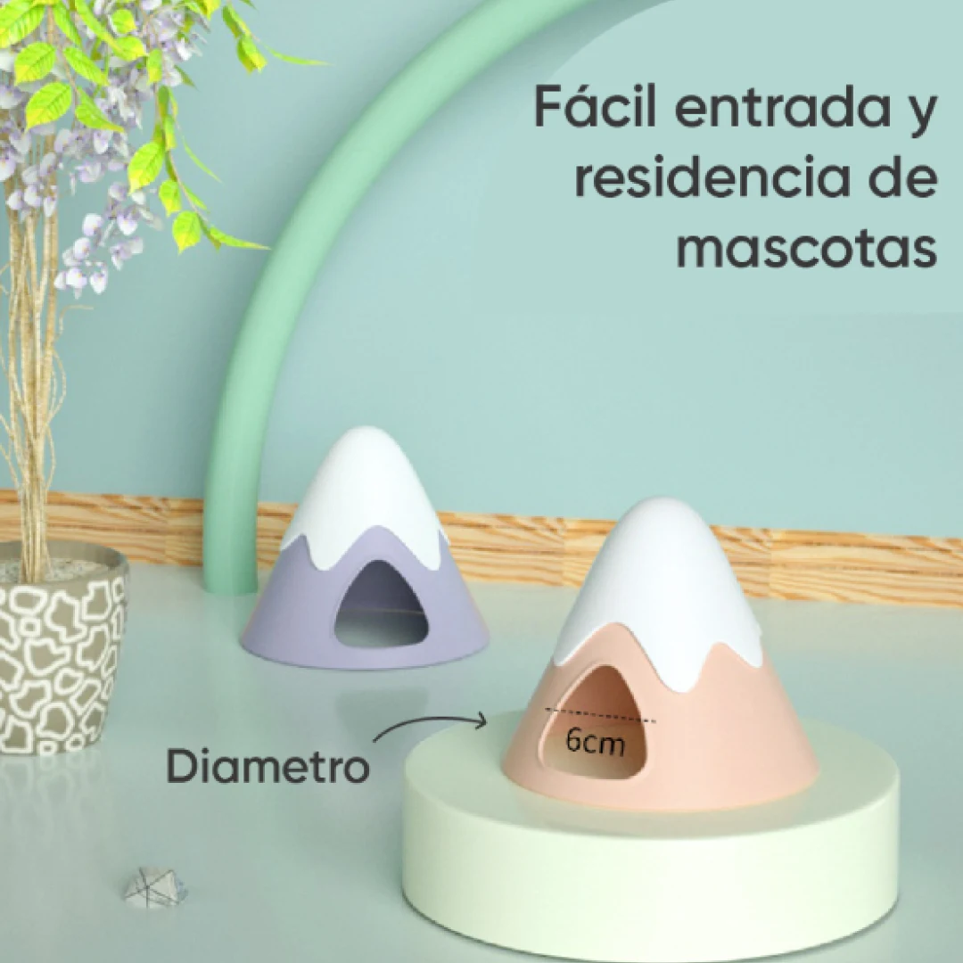 Su diseño cerrado tipo montaña mantiene la temperatura estable, ofrece privacidad y embellece el entorno del hábitat con un toque decorativo.