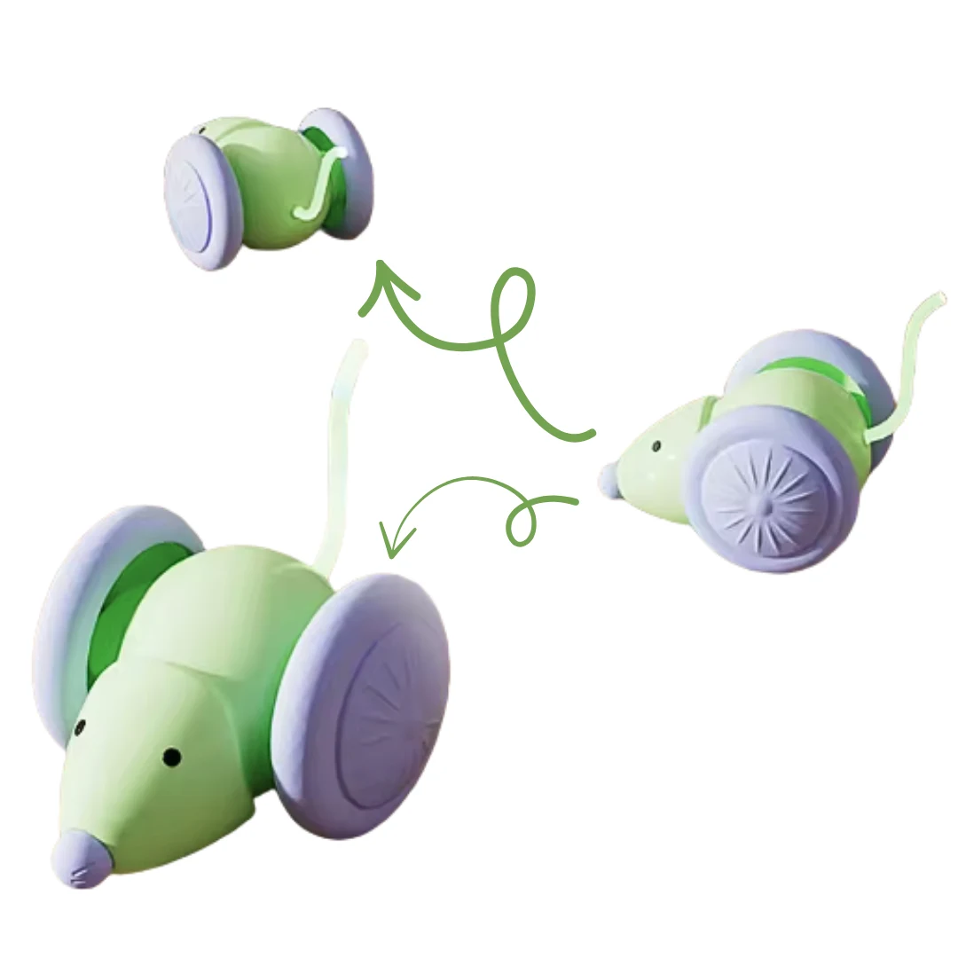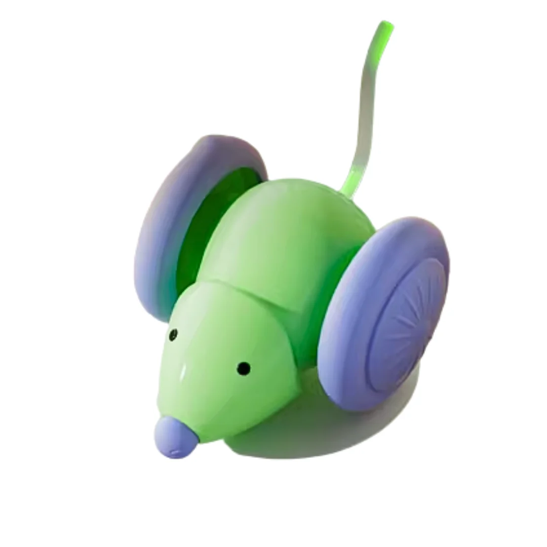 Funciona con baterías recargables o pilas AA (según modelo), lo que permite que el juguete se desplace automáticamente imitando los movimientos de un ratón real.