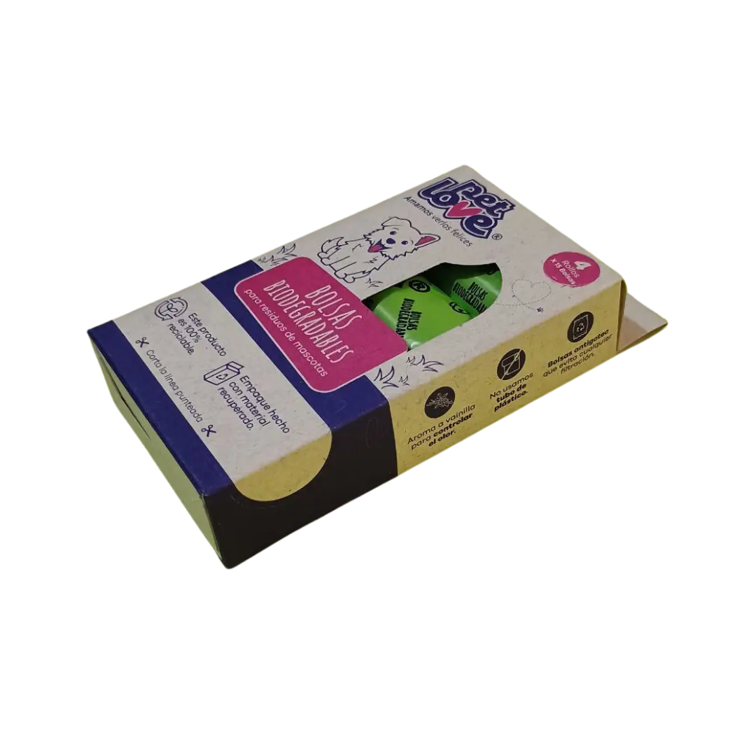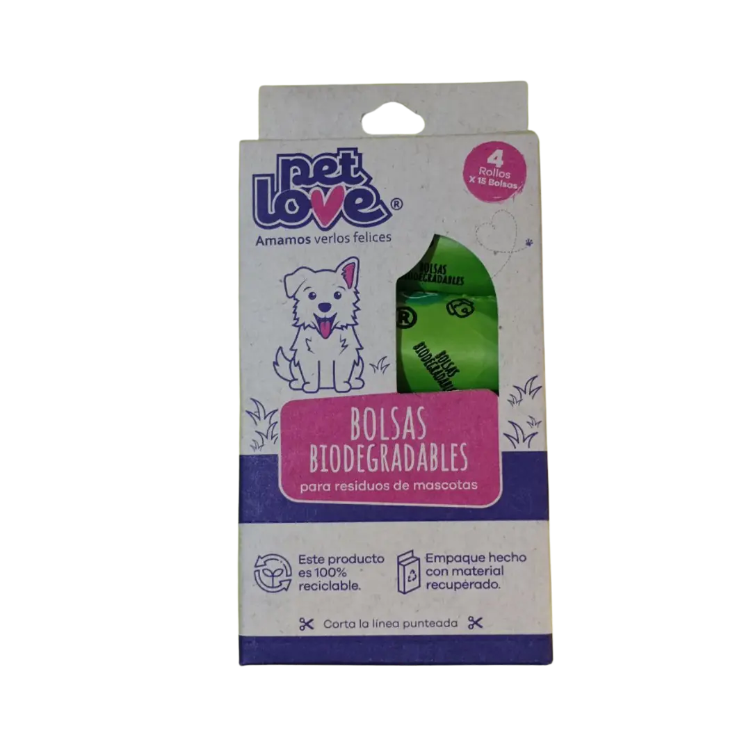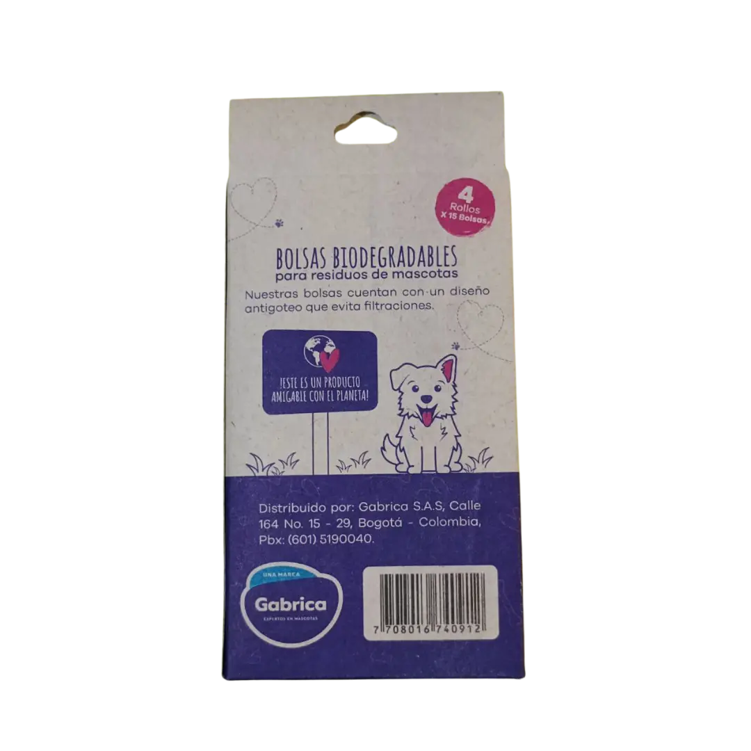 El Rollo 15 Bolsas para Popo 4 unidades – Excrementos de Perro Biodegradables Eco-Amigables son la elección perfecta para los dueños conscientes del medio ambiente, con un diseño resistente y fácil de usar, antigoteo. Vienen en rollo de 15 unidades y son fabricadas con materiales respetuosos con la naturaleza, estas bolsas se descomponen de manera segura después de su uso, reduciendo así el impacto ambiental. Incluso su empaque y el tubito en el que vienen envueltas las bolsas son reciclables y biodegradables.